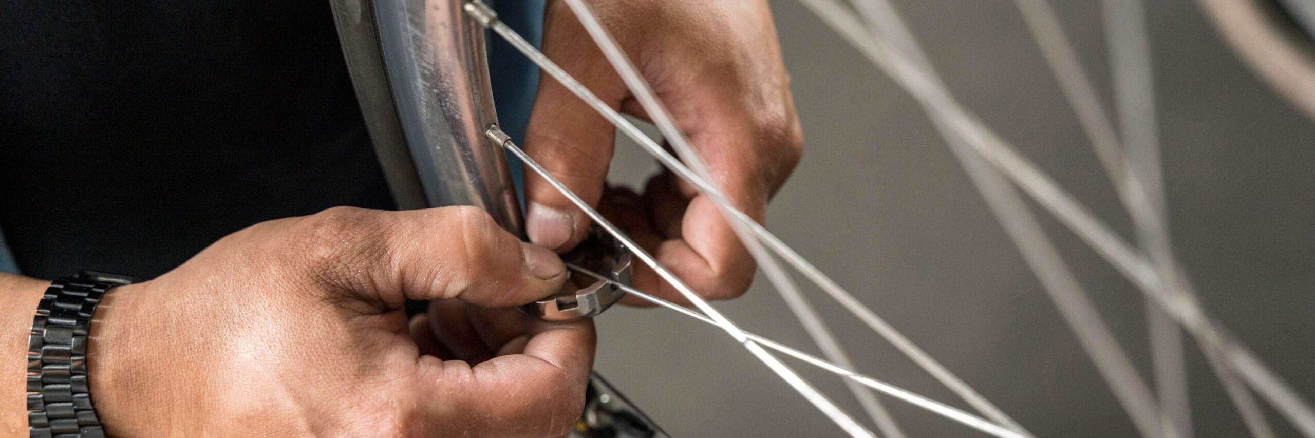 If the wheel has a noticeable wobble, keeps going out of true, or has broken spokes, it’s time for a proper truing stand and an experienced hand. We true wheels daily at Lakeside Bike Co and can usually catch small issues before they turn into full rebuilds.